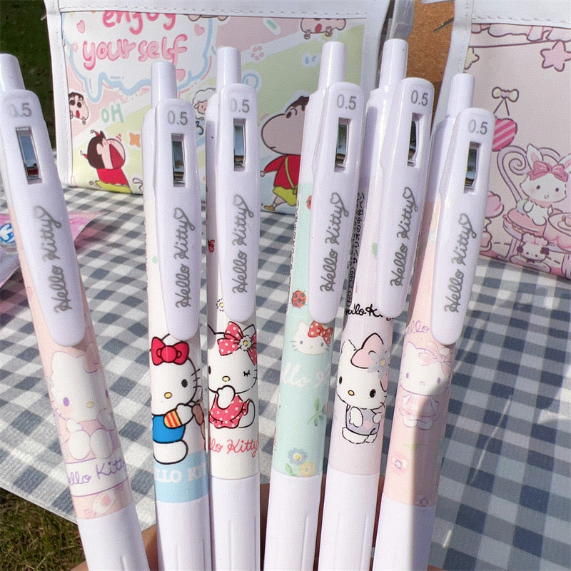٦ أقلام جاف لون أسود بتصميم هيلو كتي