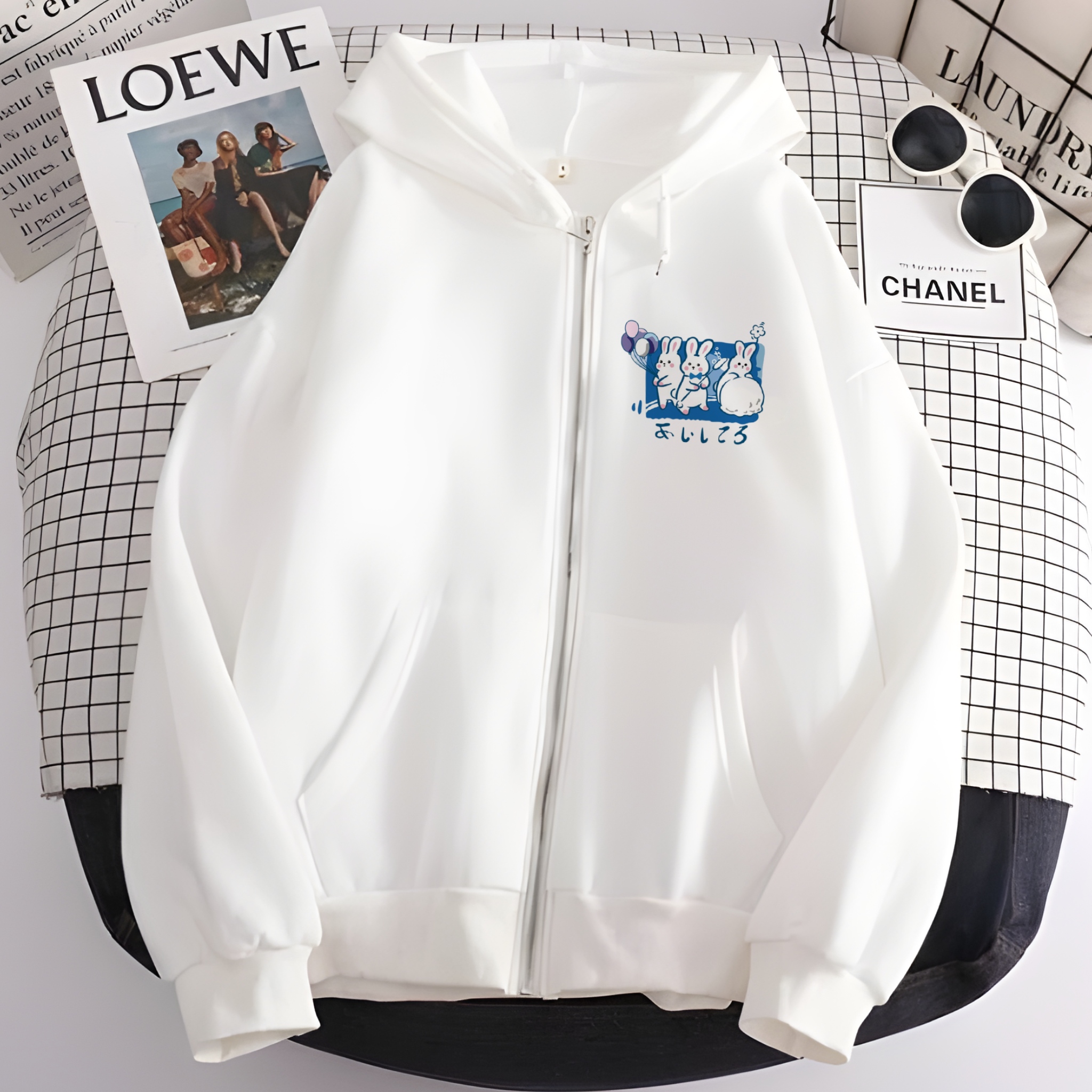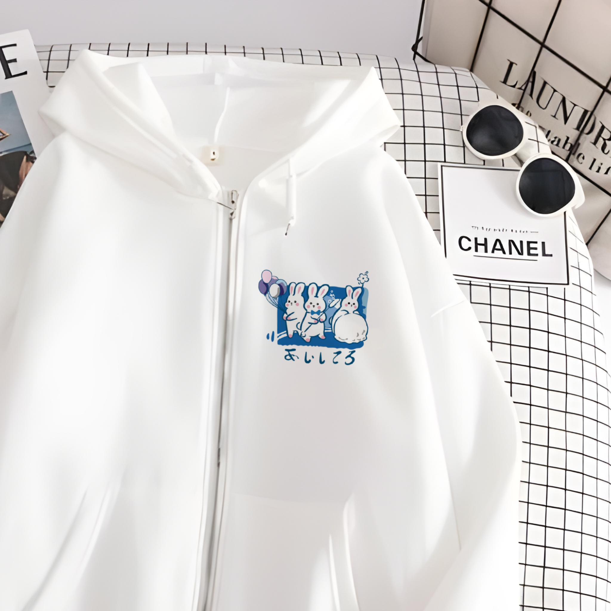 هودي ارنب ابيض بسحاب