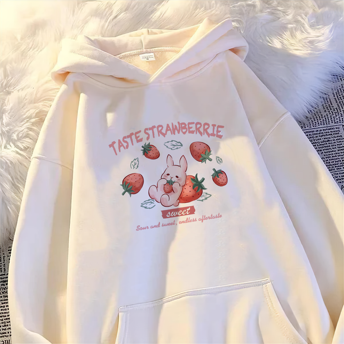 Home page ‎هودي ارنب الفراولة ابيض مبطن